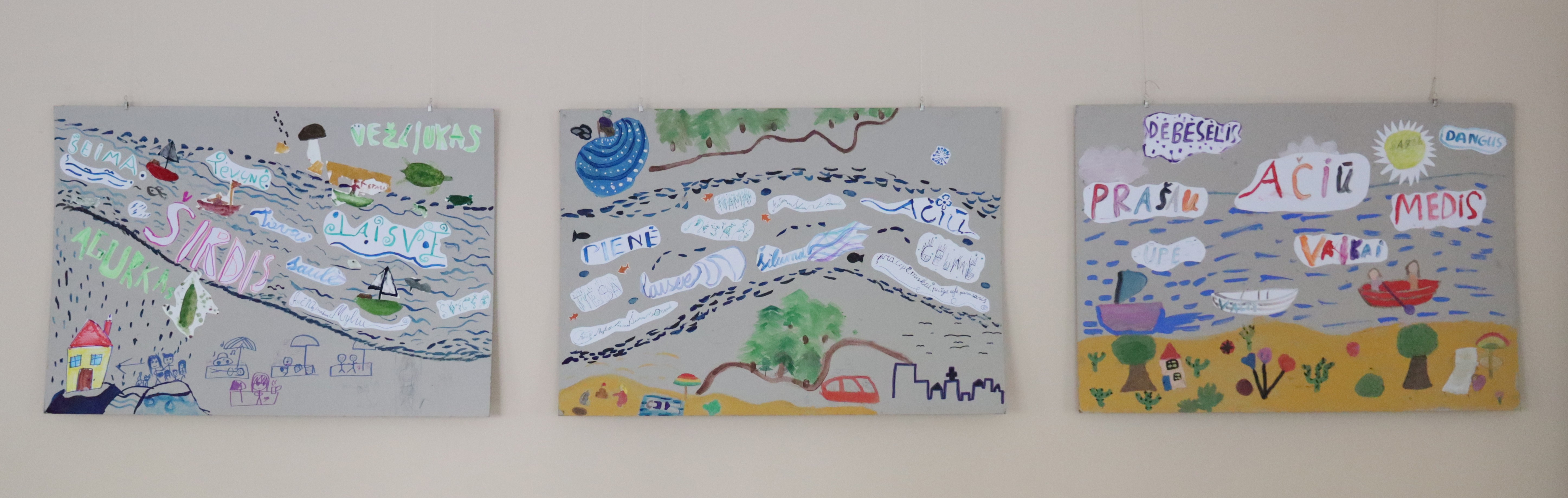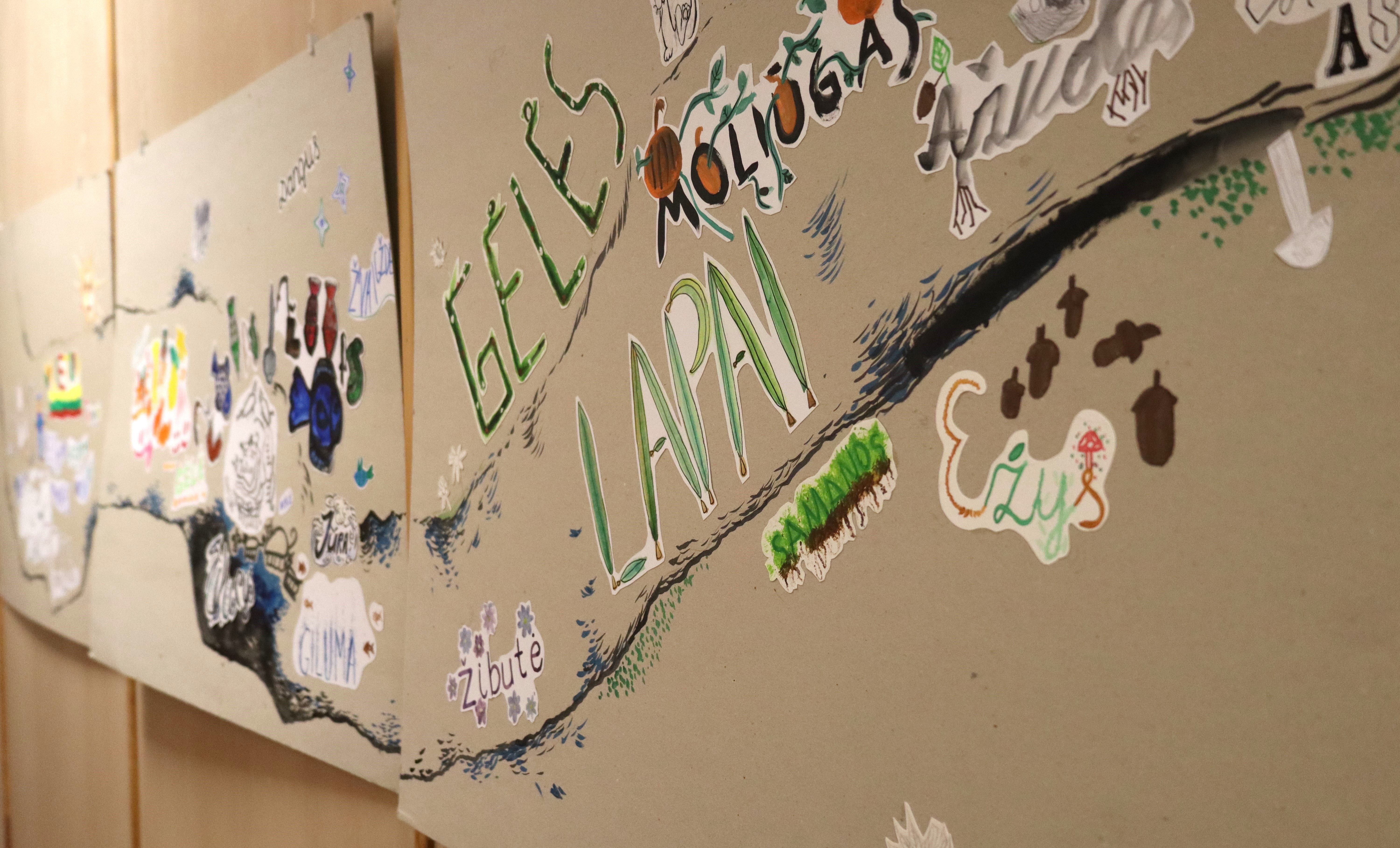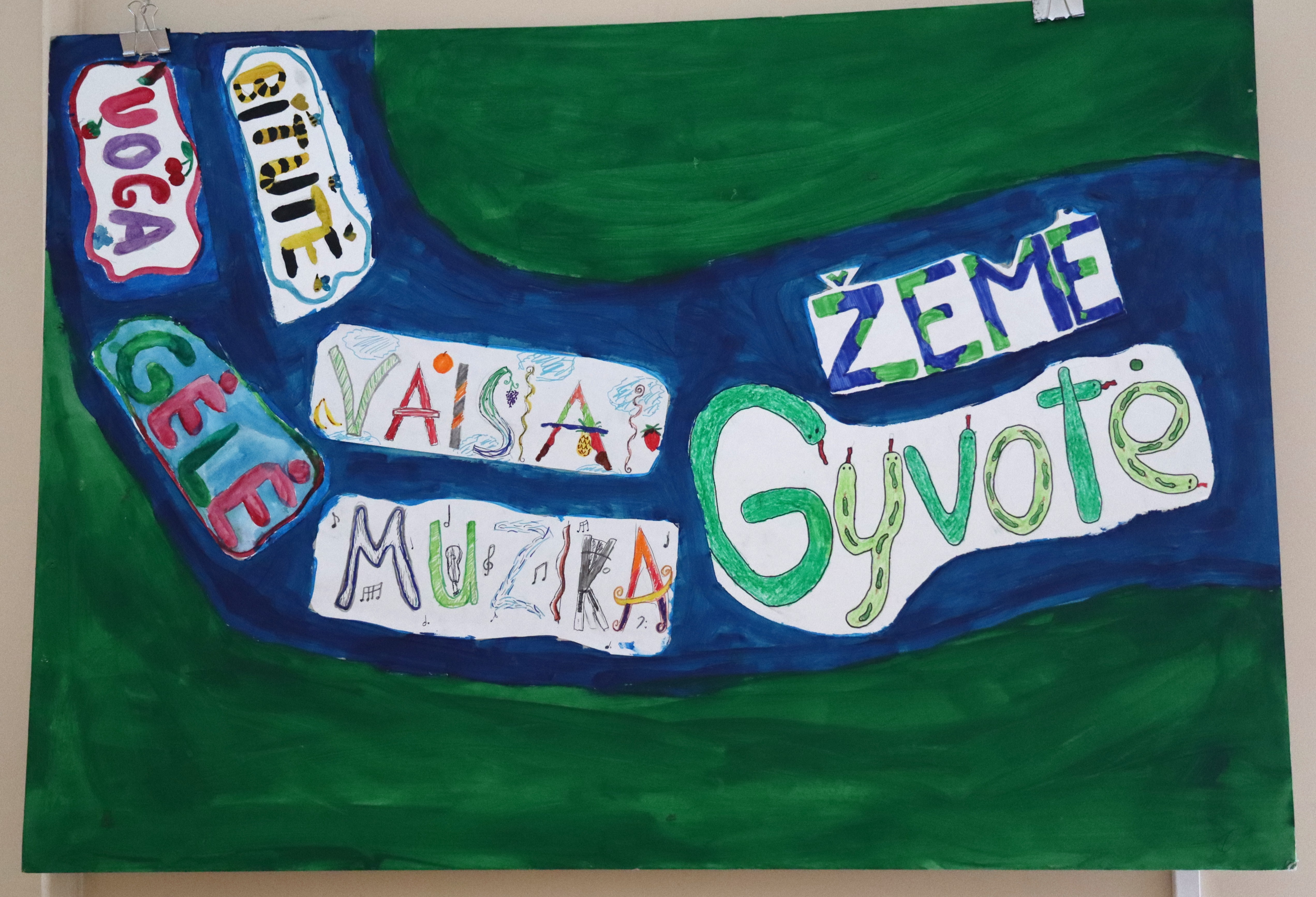 Dalyvaudami Valstybinės lietuvių kalbos komisijos iniciatyvoje, mūsų mokiniai rinko gražiausius lietuviškus žodžius, rašė juos meniniu dailyraščiu, kūrė unikalius šriftų piešinius ir sujungė juos į vientisą upę, vizualiai tekančią per centro erdves.