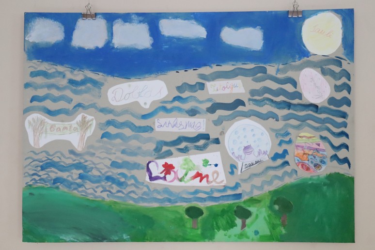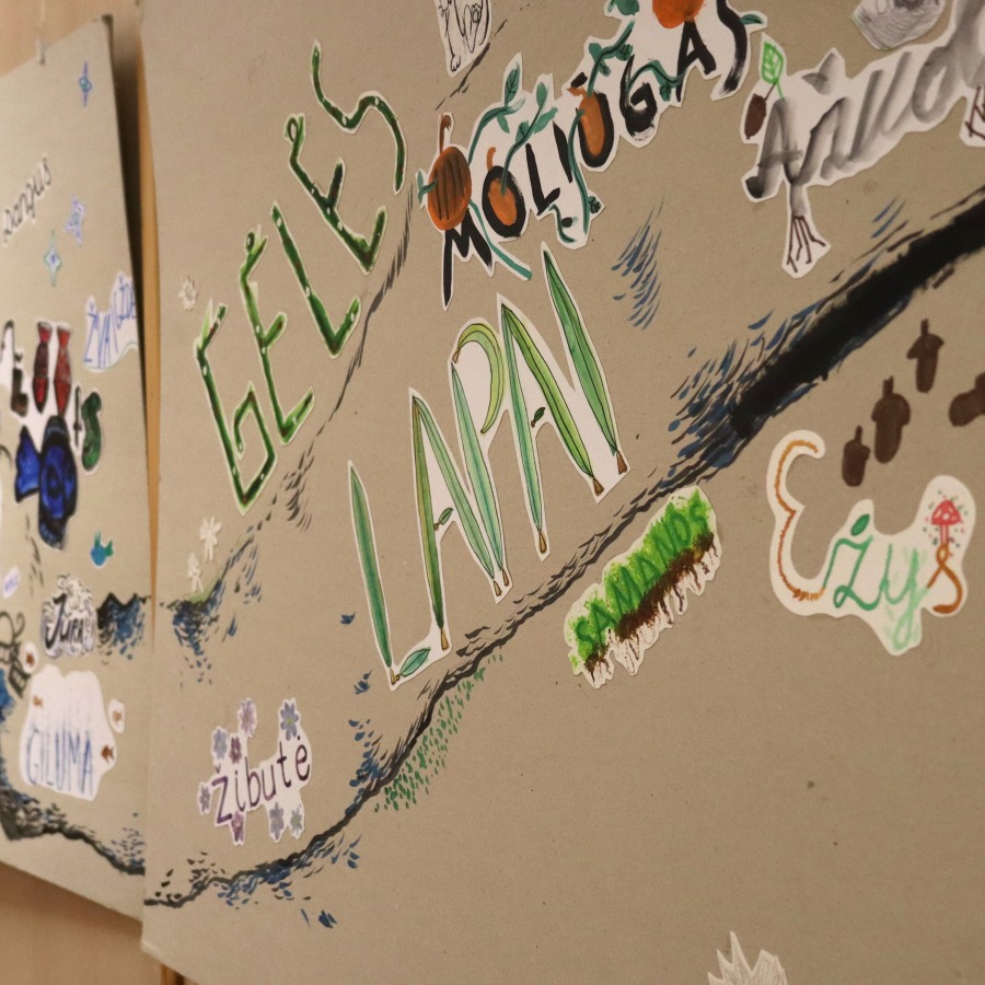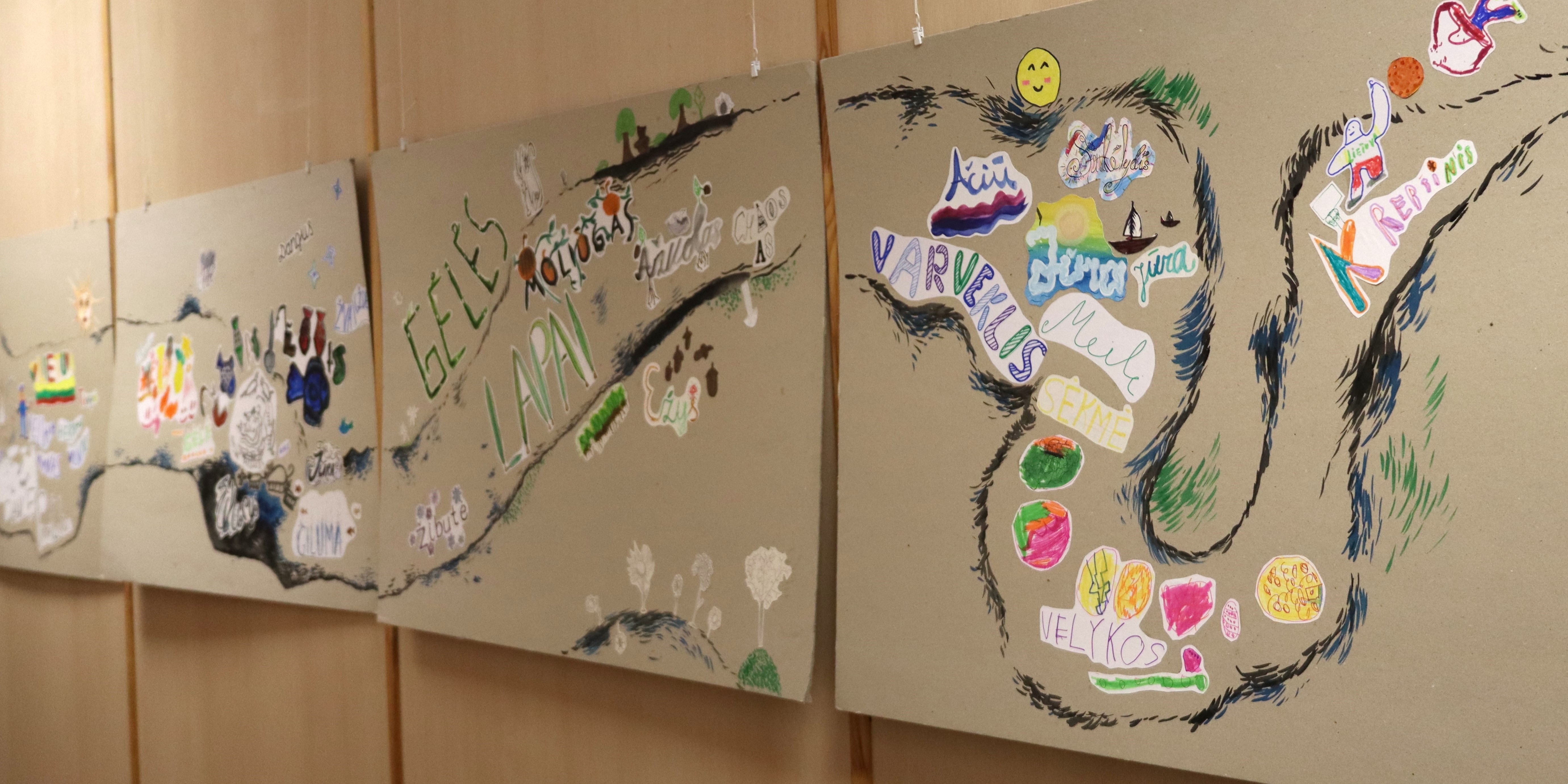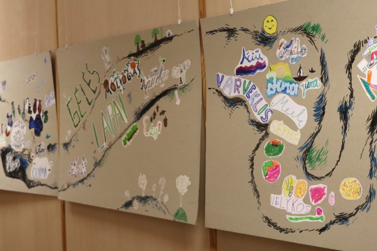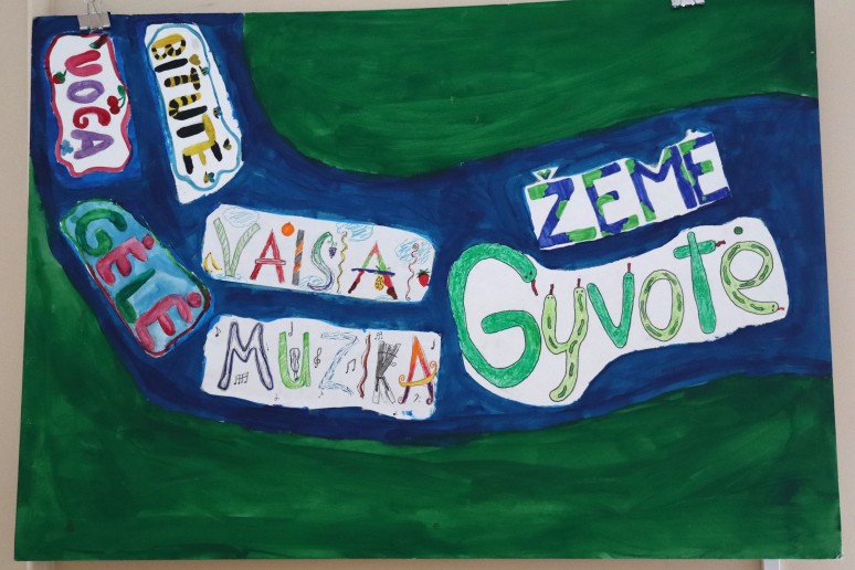 Dalyvaudami Valstybinės lietuvių kalbos komisijos iniciatyvoje, mūsų mokiniai rinko gražiausius lietuviškus žodžius, rašė juos meniniu dailyraščiu, kūrė unikalius šriftų piešinius ir sujungė juos į vientisą upę, vizualiai tekančią per centro erdves.