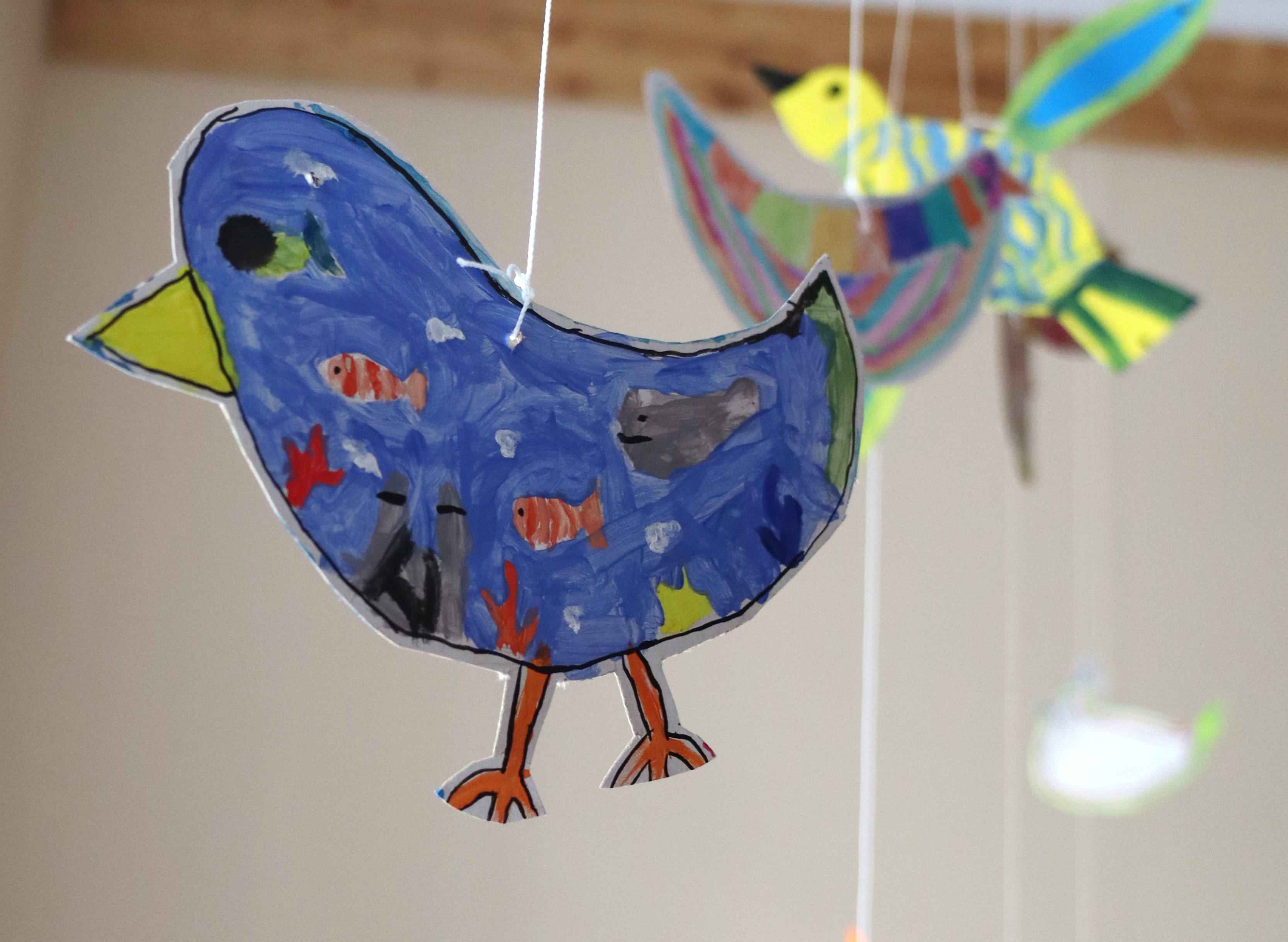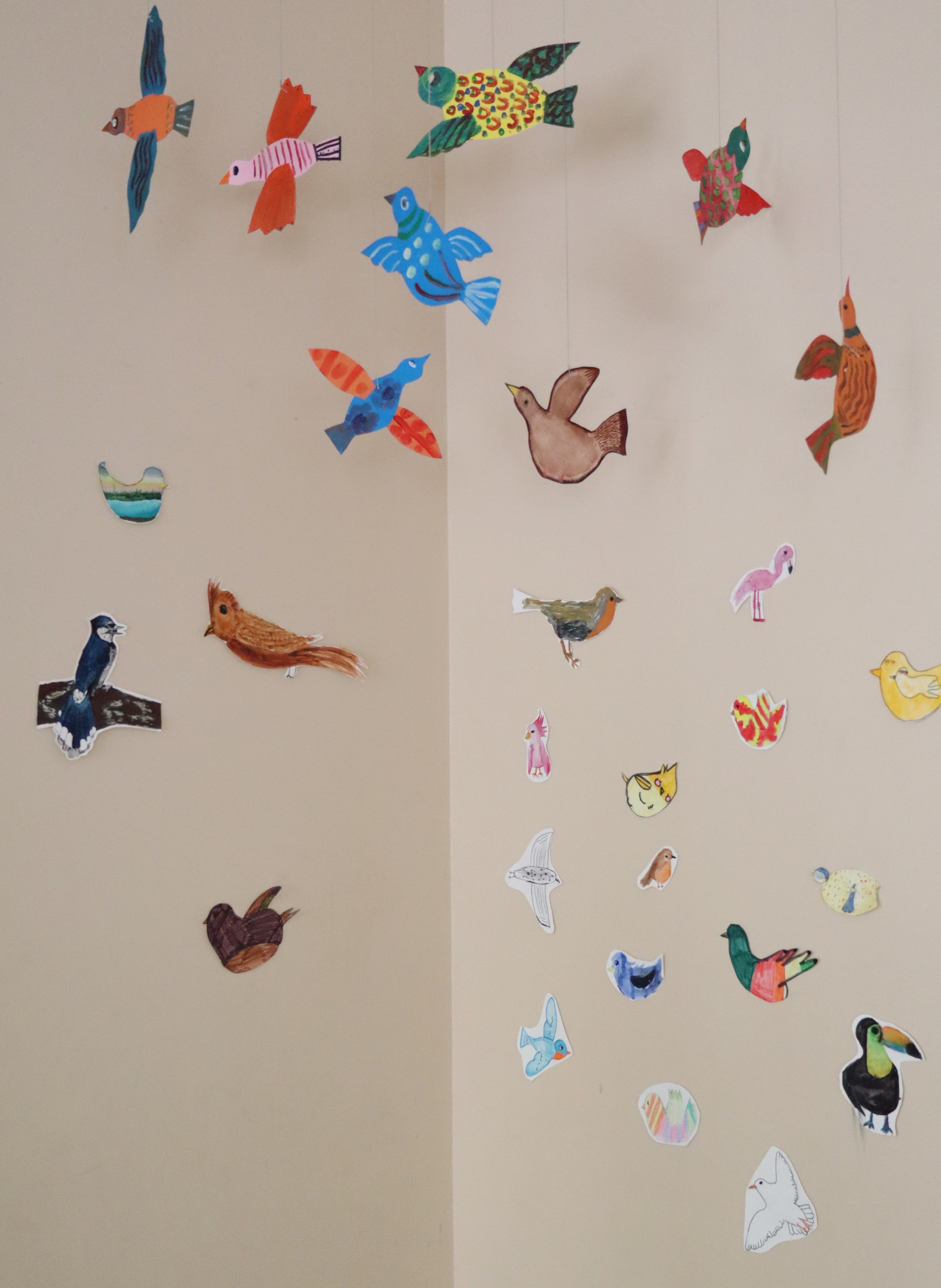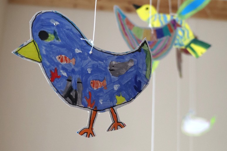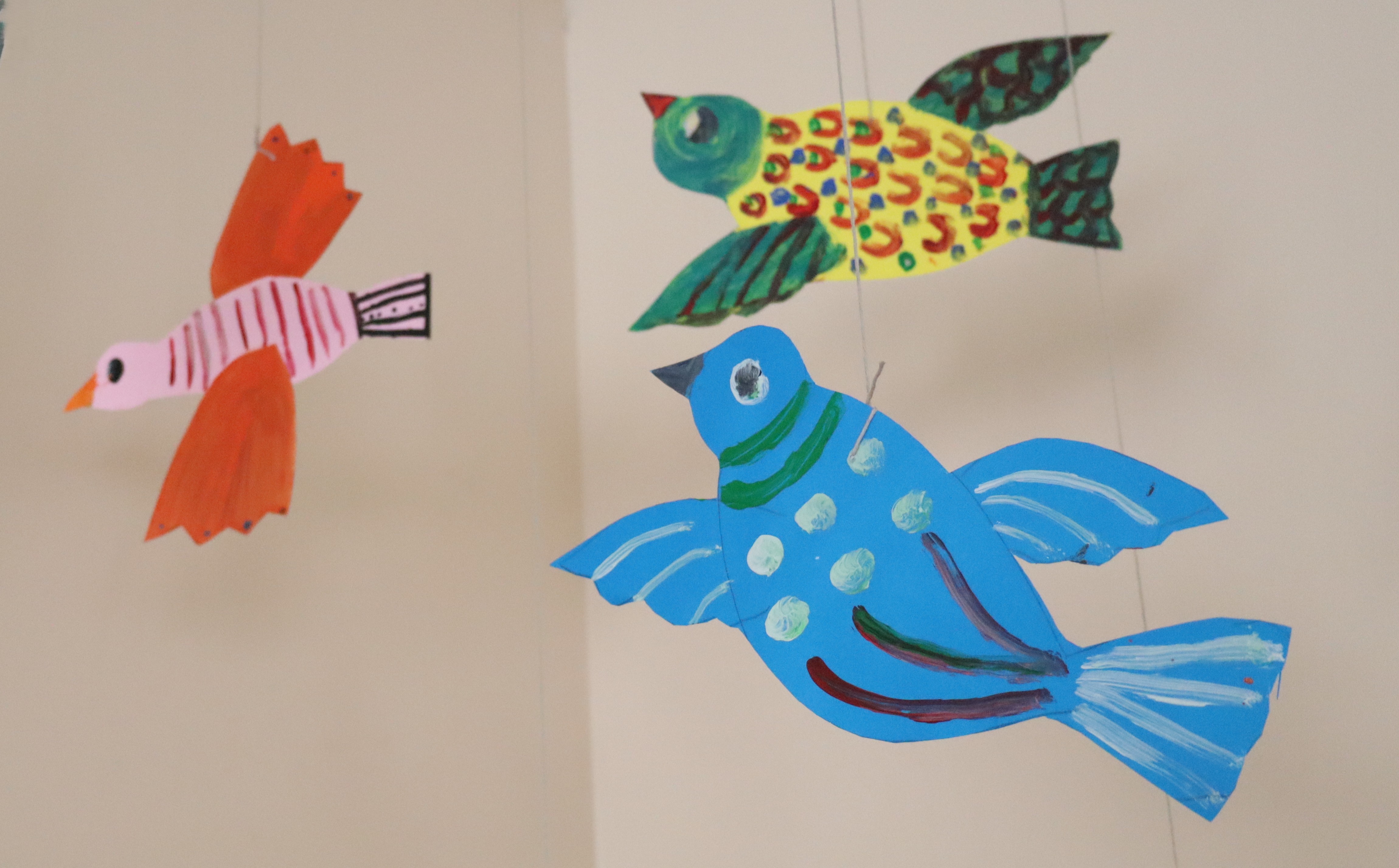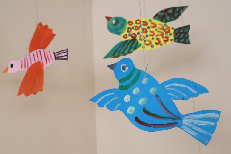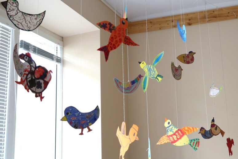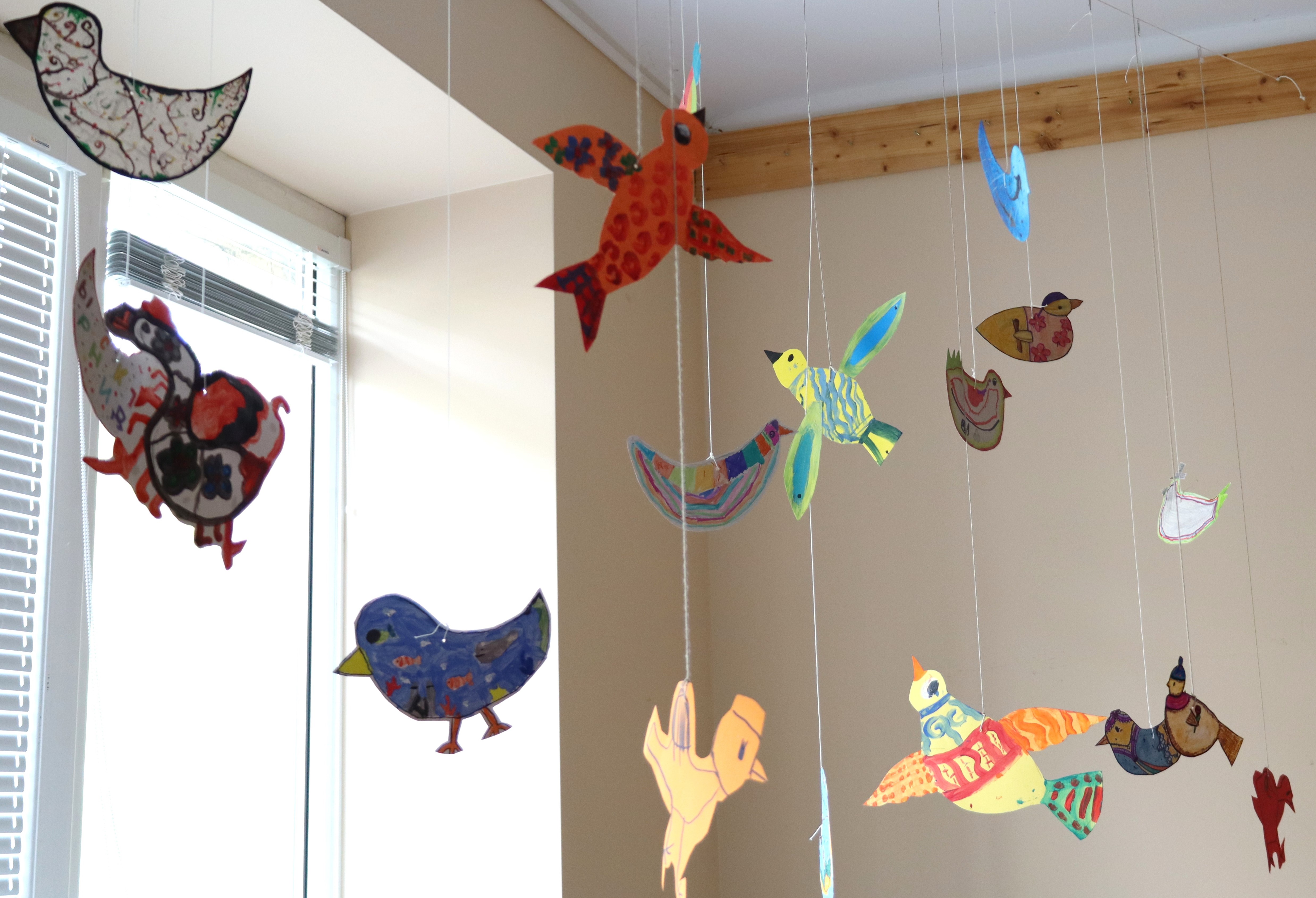 Dar viena paroda, papuošusi VMKMC erdves – tai spalvinga, žaisminga mokinių sukurta paukščių instaliacija. Nutūpę tarsi pavasario pasiuntiniai, šie giesmininkai simbolizuoja gamtos pabudimą ir šventinę Velykų nuotaiką.