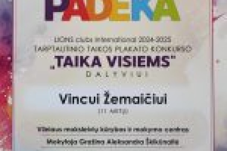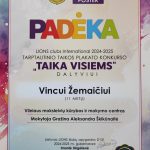 Didžiuojamės mūsų mokiniu Vincu Žemaičiu, kuris tapo šio konkurso laureatu! Jo kūrybinis darbas buvo pripažintas tarp geriausių, o Vilniaus Karaliaus Mindaugo LIONS klubas apdovanojo laimėtoją 100 eurų prizu.