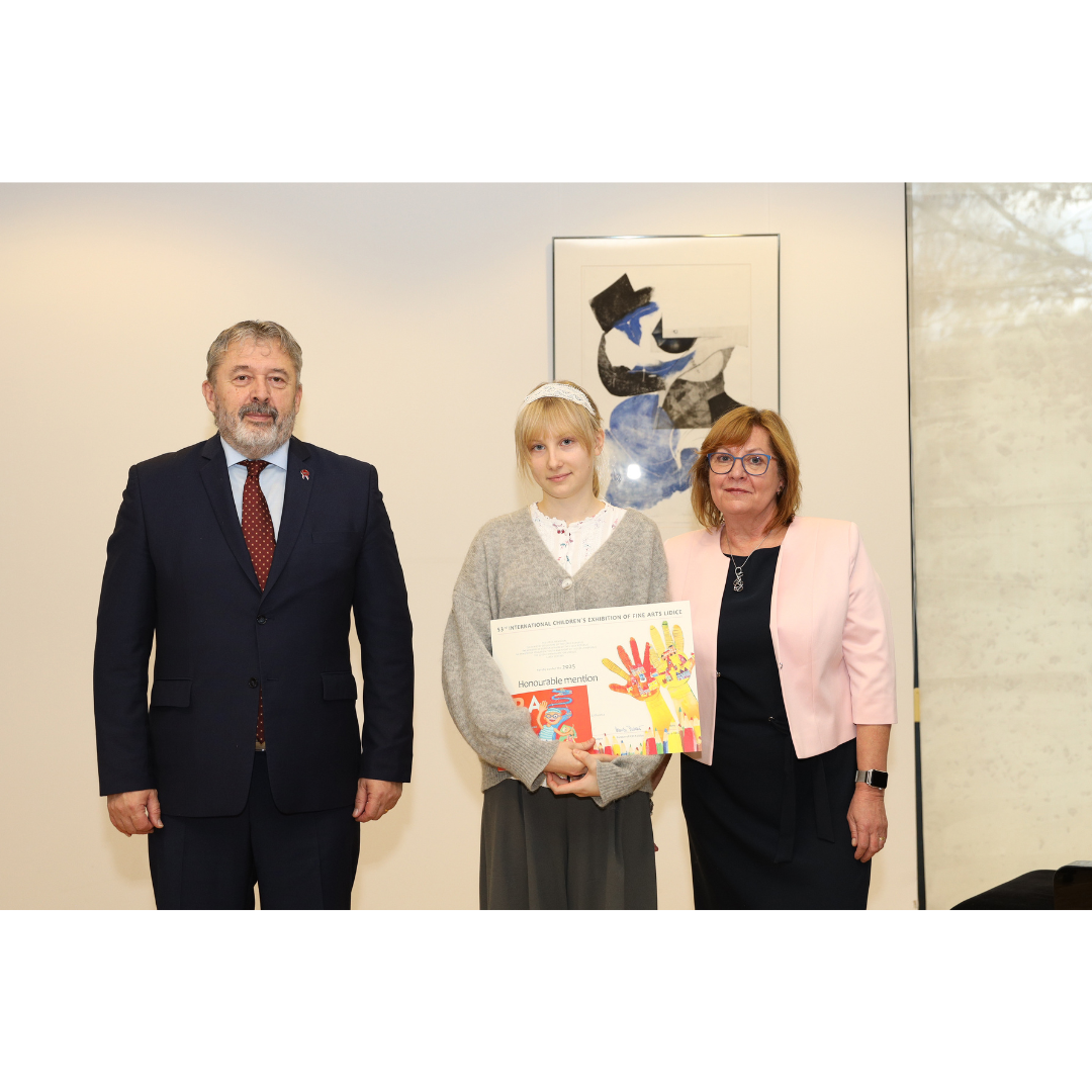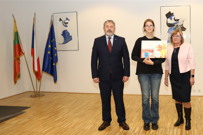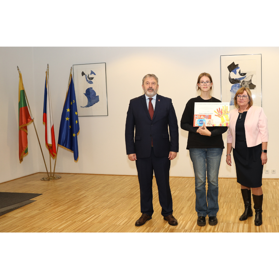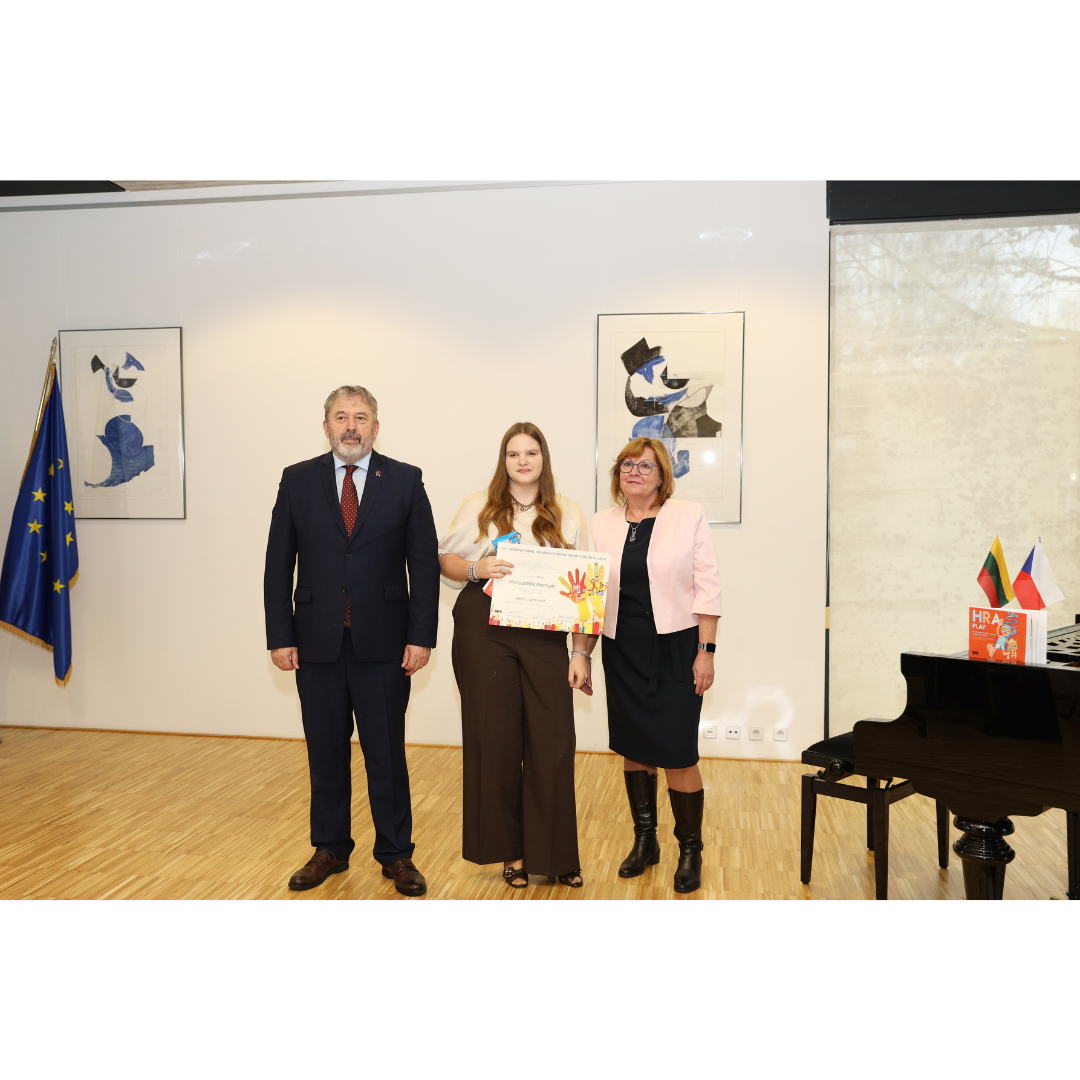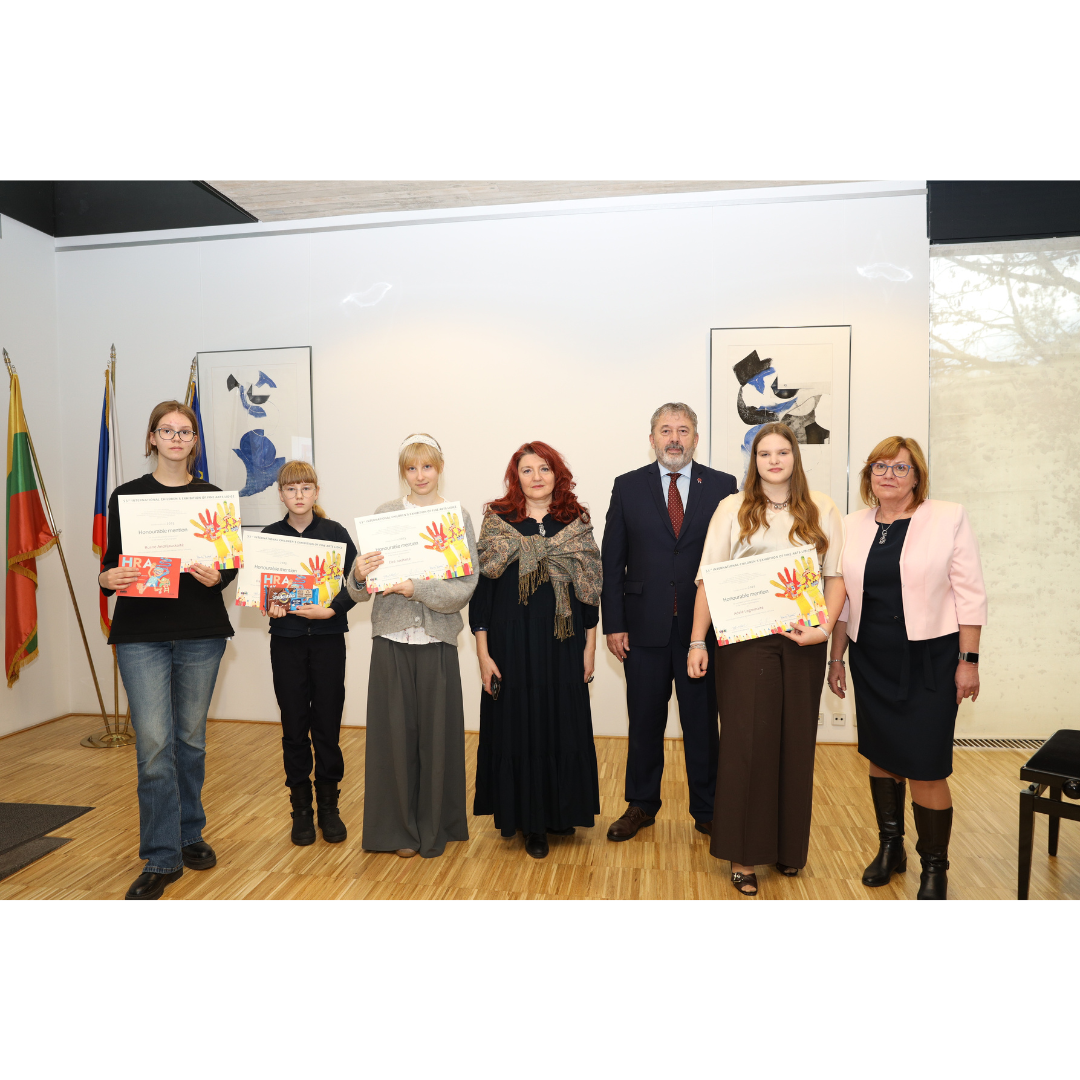 Lapkričio 20 d. mūsų mokiniai, jų tėveliai ir mokytojai lankėsi Čekijos Respublikos ambasadoje Vilniuje, kur atsiėmė Tarptautinio vaikų piešinių konkurso LIDICE 2025 apdovanojimus.