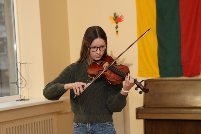 Kovo 10 d. Vilniaus moksleivių kūrybos ir mokymo centre nuaidėjo ypatinga šventė – su džiaugsmu ir vienybe paminėta Lietuvos Nepriklausomybės atkūrimo diena. Renginio pradžioje visi susirinkusieji sugiedojo „Tautišką giesmę“, kuriai jautrią ir įkvepiančią smuiko melodiją suteikė mokytoja Viktorija Žustautienė kartu su muzikos programos mokine Paulina Jankunec.