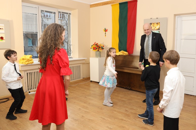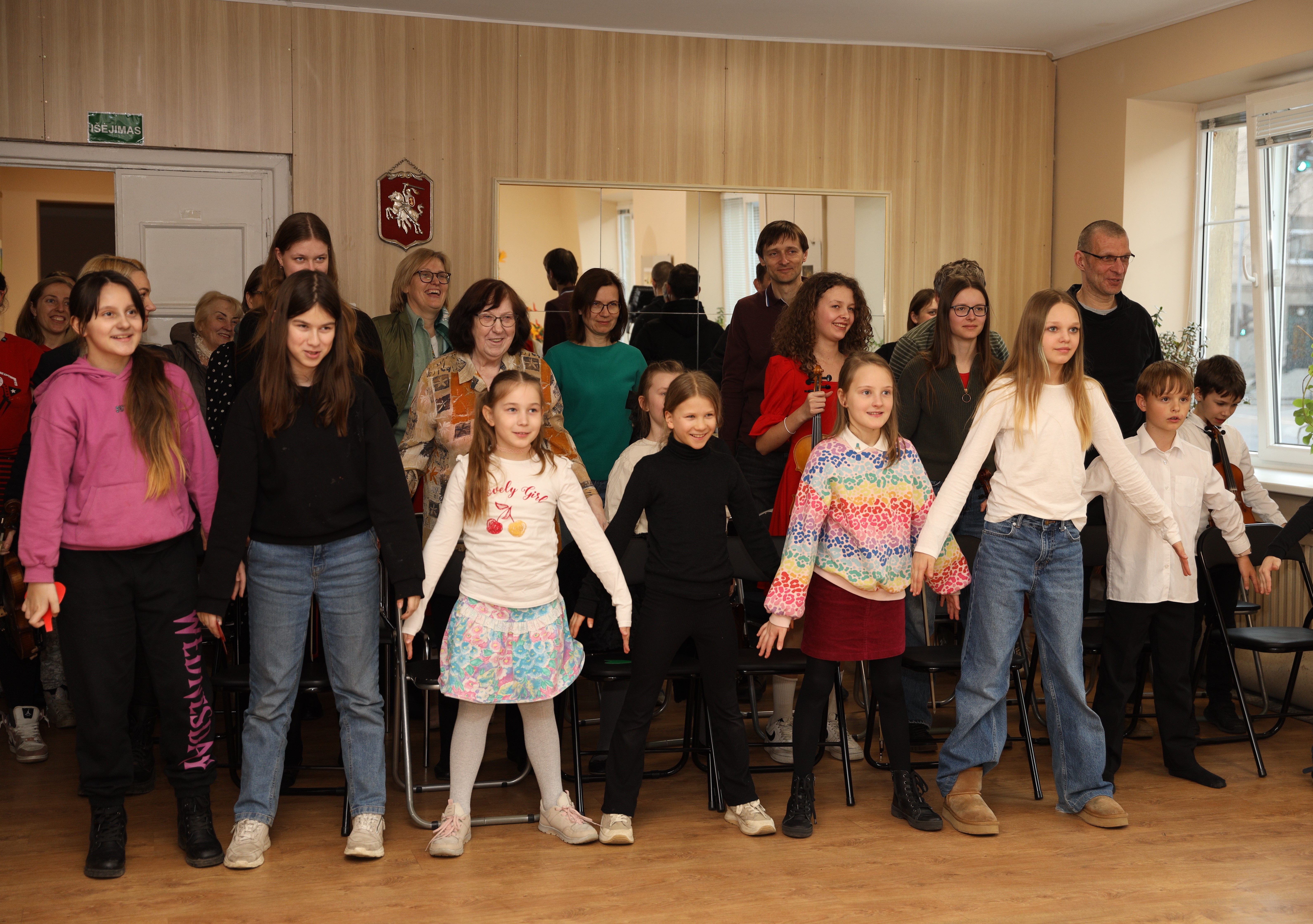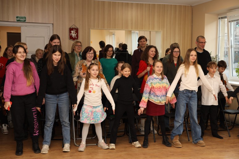 Šventės pabaigoje visi susibūrė ne tik bendrai nuotraukai, bet ir įtraukiančioms žaidimų akimirkoms. Salėje vyravo šventinė nuotaika, kurią dar labiau sustiprino mokinių sukurti dekoratyviniai trispalviai akcentai – šią ypatingą atmosferą padėjo sukurti Taikomosios dailės programos mokiniai Eglė Gelmė Usonytė, Luknė Kačonaitė, Vėjas Klimantavičius ir Gojus Klimantavičius.
