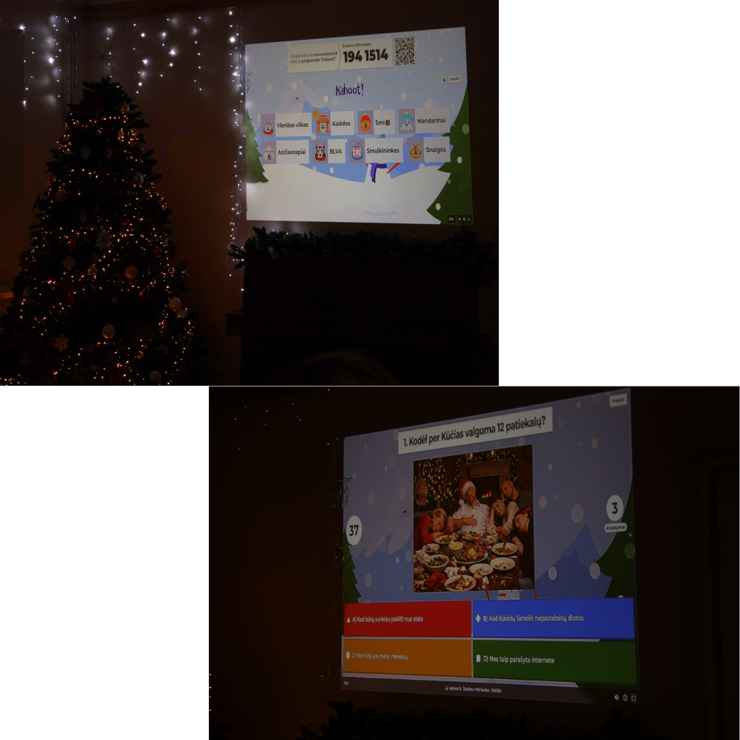 Gruodžio 18 d. VMKMC salėje susirinkę tėveliai, mokytojai, mokiniai ir administracija turėjo jaukų laiką kartu. Šventės metu prie vaišių stalo su kakava ir arbata žaidėme viktoriną apie artėjančias šventes.