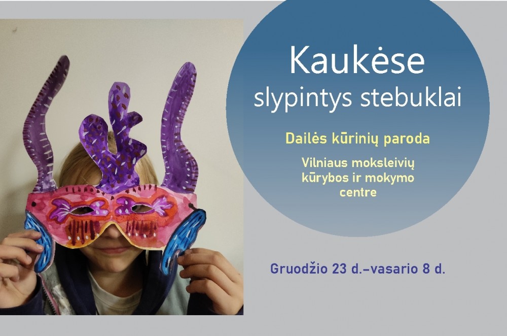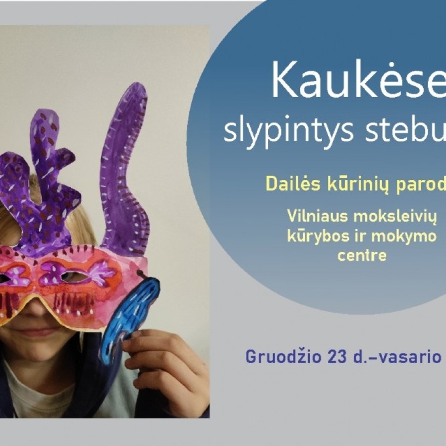Kaukė – tai ne tik persikūnijimas į kitą personažą. Už jos slypi galimybė atskleisti naujas spalvas, emocijas ir istorijas. Tokį atradimo džiaugsmą perteikia ir Vilniaus moksleivių kūrybos ir mokymo centro dailės klasių mokiniai parodoje „Kaukėse slypintys stebuklai”.