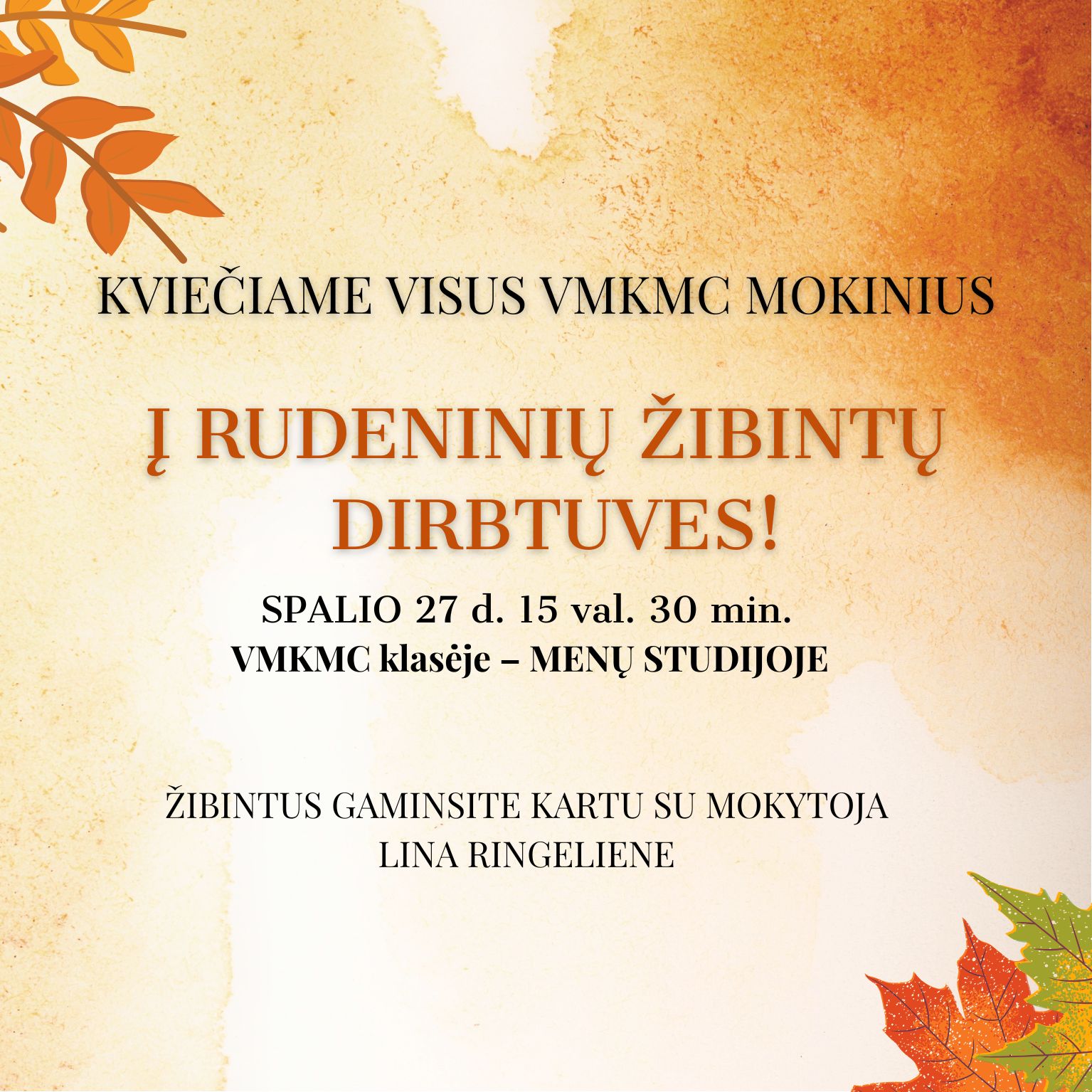 Kviečiame visus Vilniaus moksleivių kūrybos ir mokymo centro mokinius į rudeninių žibintų dirbtuves, kurios vyks spalio 27 d. 15:30 val. Menų studijoje.