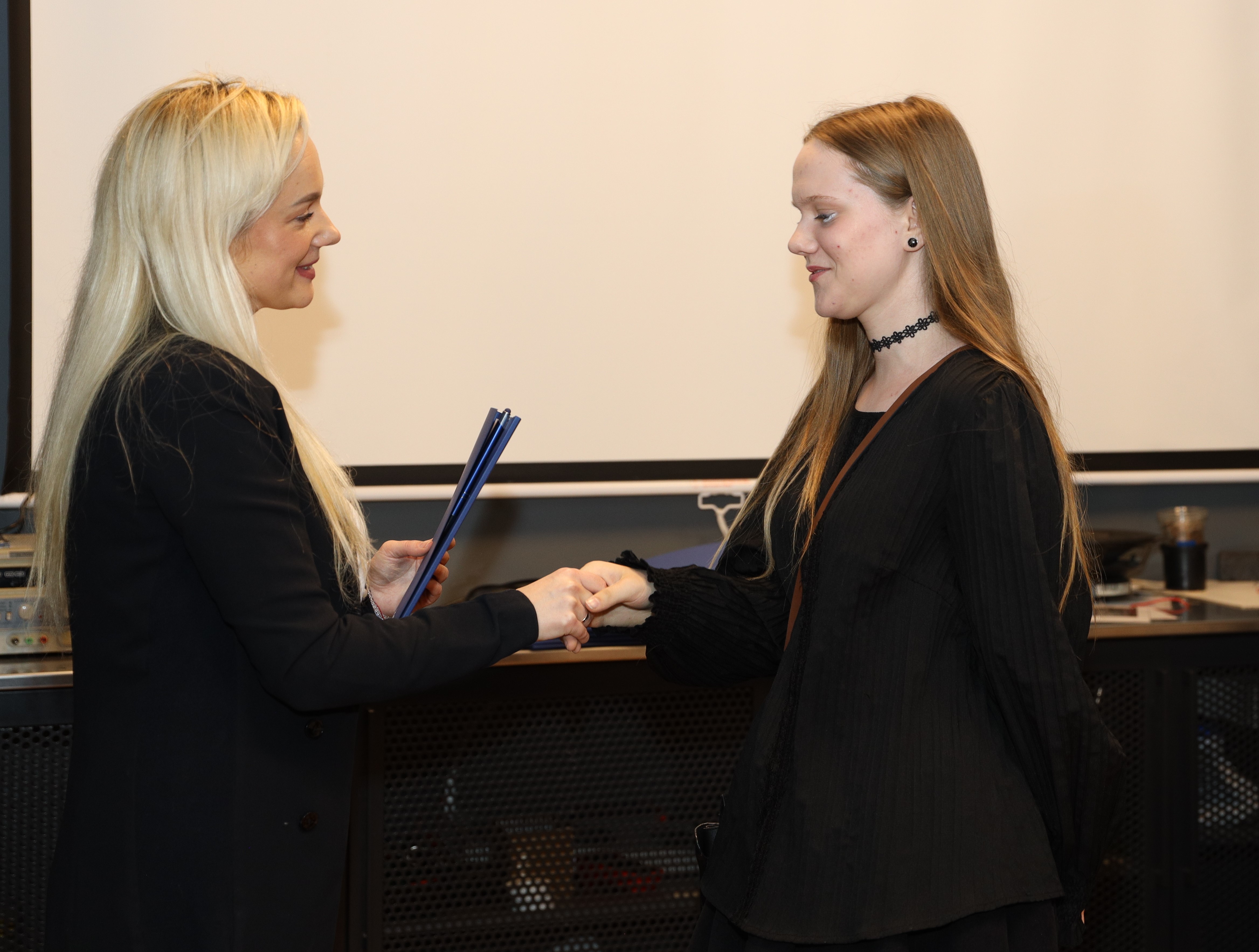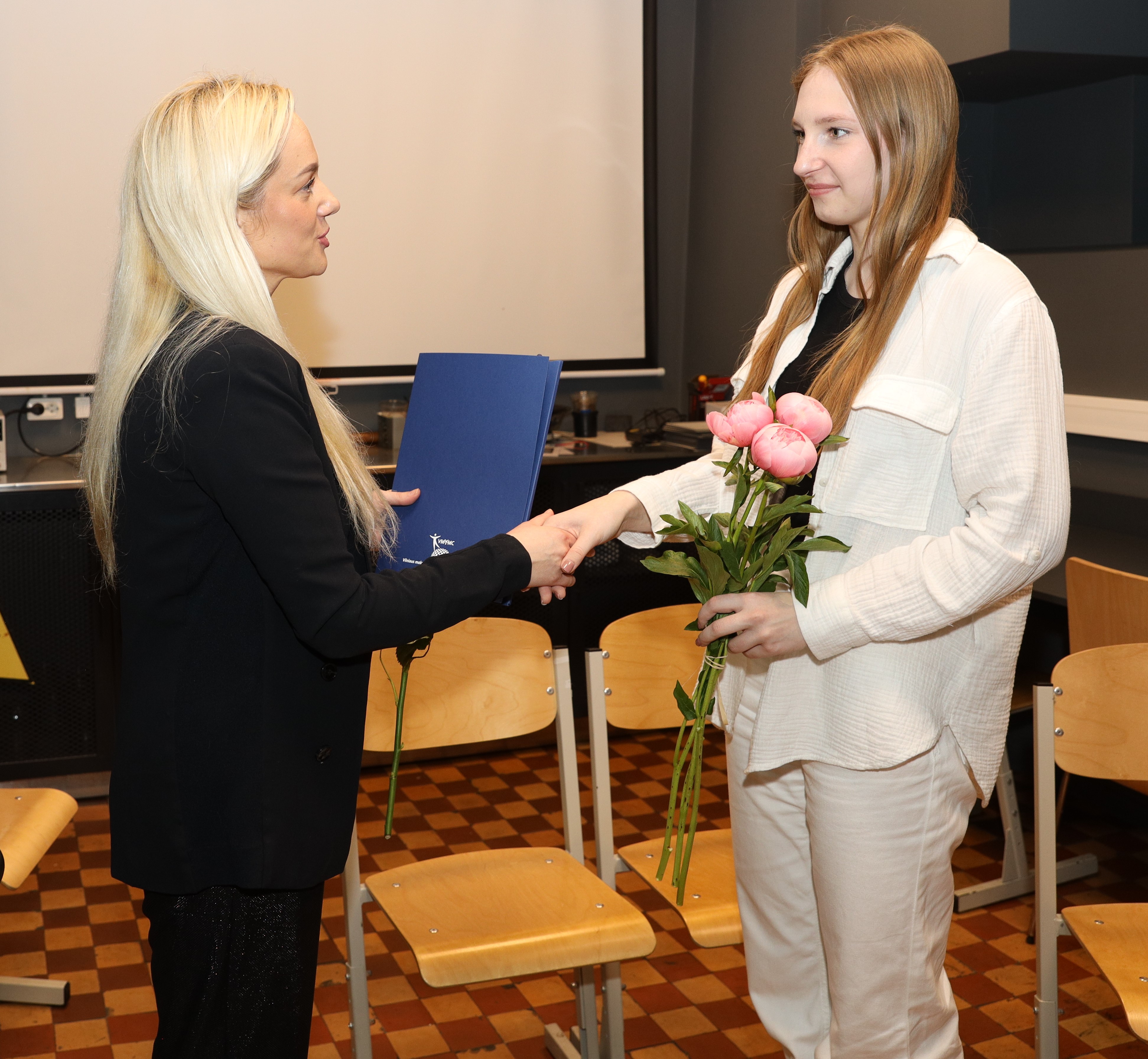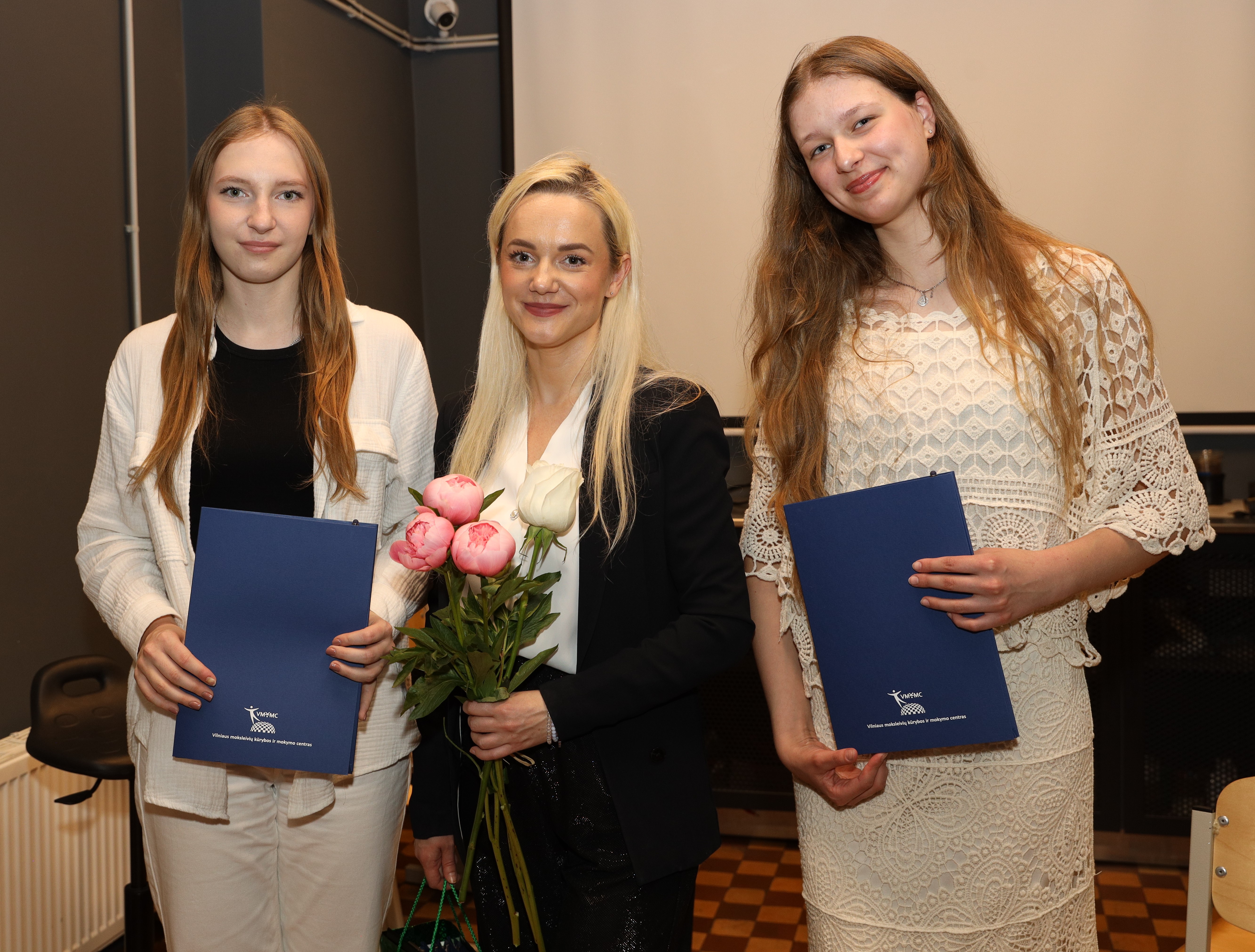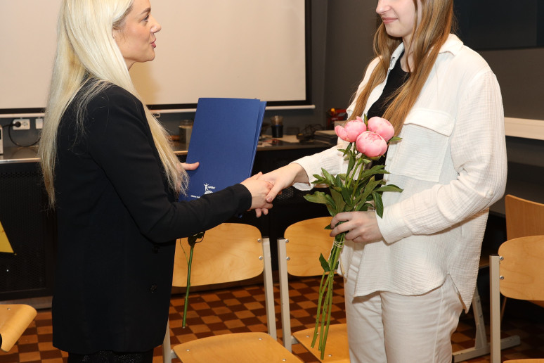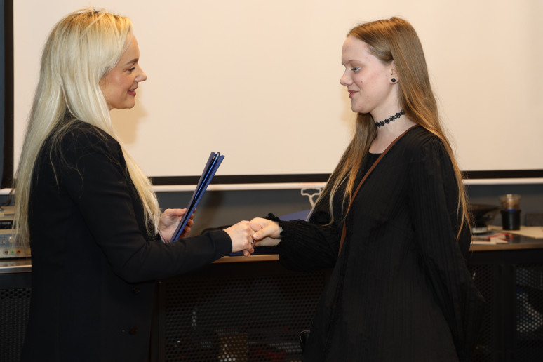 Dailės, muzikos, videomeno ir fotografijos programų baigiamųjų darbų pažymėjimus įteikė direktorės pavaduotoja ugdymui Viktorija Žustautienė.
